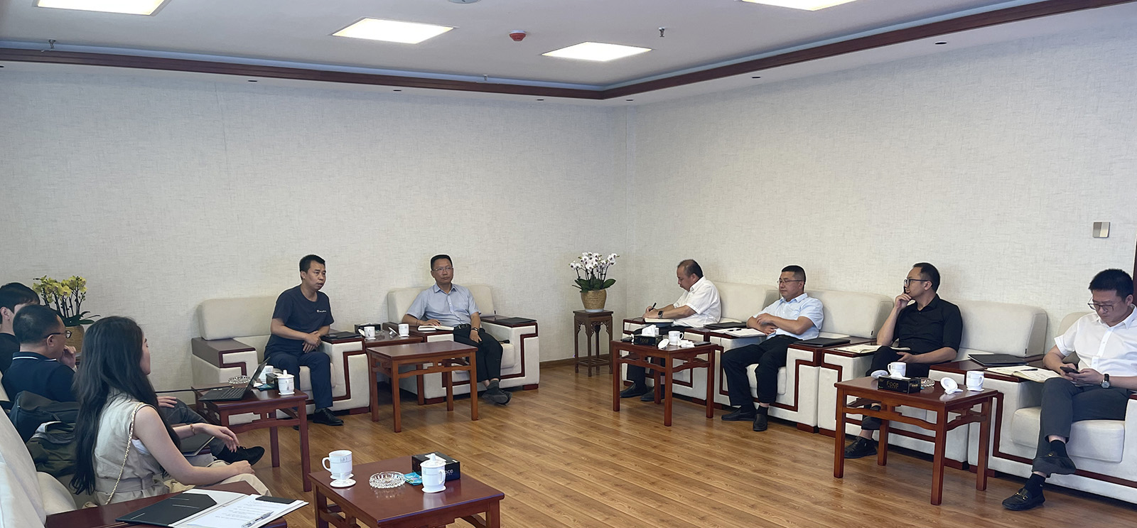 5月19日下午,集团董事长郑桂文与临沧市城乡建设开发集团有限公司党委书记、董事长左金祥进行会谈,双方围绕县域数字经济平台建设等领域进行了详细交流。临沧市城乡建设开发集团党委副书记陈建东、总会计师王建荣及相关部门、数字(临沧)投资开发有限公司负责人参加了本次会谈。